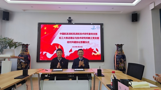 为全面贯彻新时代党的建设总要求和新时代党的组织路线,深入学习贯彻党的二十大精神,全面贯彻落实学校第十三次党代会精神,加强基层党组织建设,深化产教融合与校企合作,按照学院党委统一部署,伊莉讨论区 伊莉讨论区 推进理论与技术研究所教工党支部(下简称能源推进党支部)和中国航发涡轮院涡轮技术研究室党支部(下简称624所涡轮室党支部)于2023年3月29日-30日在伊莉讨论区 举行支部共建系列活动。624所涡轮室党支部书记王兵、涡轮室副主任张维涛、涡轮室其他党员代表,哈工大伊莉讨论区 党委书记赵义军、航空研究院执行院长王松涛、伊莉讨论区 党委副书记李威、能源推进党支部书记兼航空研究院副院长温风波、推进党支部其他党员代表共同参与了系列活动。