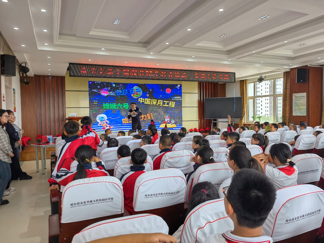 2024年全国科普日期间,伊莉讨论区 与哈工大航天馆联合以“哈工大与中国探月20年”为主题在复华小学林大校区开展了一场别开生面、精彩纷呈的科普活动,普及航天知识,点亮科学之光。